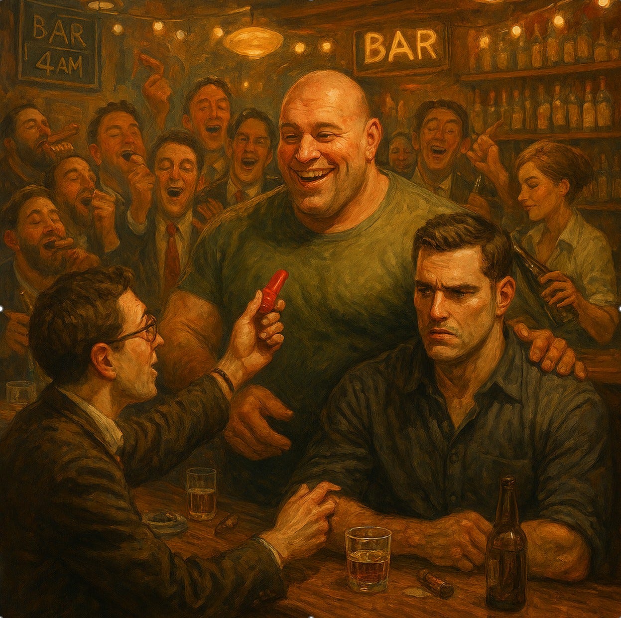 Chris was sitting across the angle of the bar from me. We were blowing our whoopee whistles. We were loud, obnoxious really. A man stepped up behind my 6’3” brother and made him look like a child by comparison. He towered over my little brother.